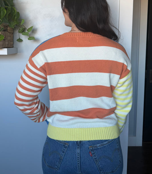 COTTON COLOR BLOCKED STRIPE SWEATER